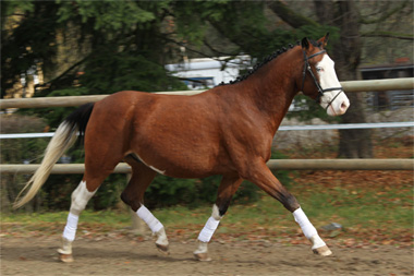 Toller Reitponywallach im Kleinpferdeformat mit elastischen, weichen Grundgangarten und Doppelveranlagung. Ein echter “Hingucker” der fleissig mitarbeitet und in der Bahn ebenso wie im Gelände gut zu reiten ist.
